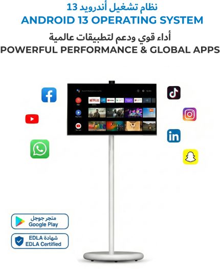 27 Inch Portable TV Screen with Stand Android 15 Display Touch Screen 13MP Built-in Camera